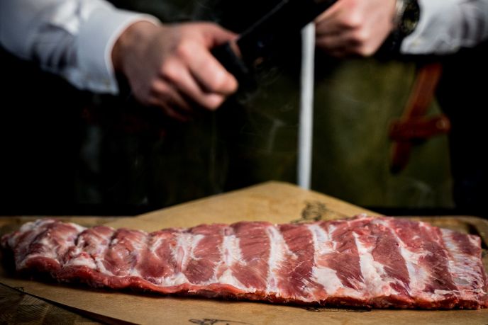 Buikspareribs gesneden in eigen slagerij