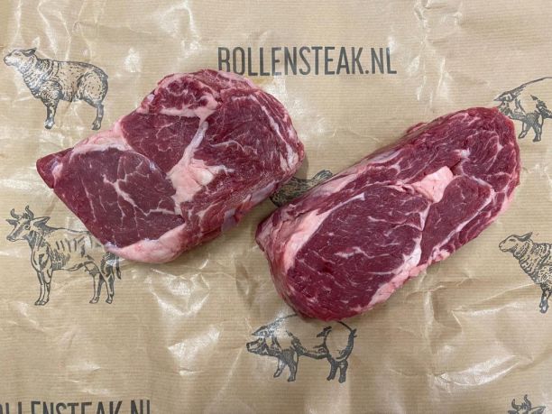 Zoals de naam al doet vermoeden wordt een ribeye gesneden van het ribrack dat zich bevind aan de voorkant van een rund. Aan deze zijde heeft het vlees meer bewogen waardoor het voller is van smaak. De ribeye is doorregen met kleine vetadertjes waardoor het een prachtige marmering heeft. Het is goed om te weten dat deze vetadertjes verdwijnen tijdens de bereiding en daardoor zorgen voor meer smaak en malsheid van het vlees.